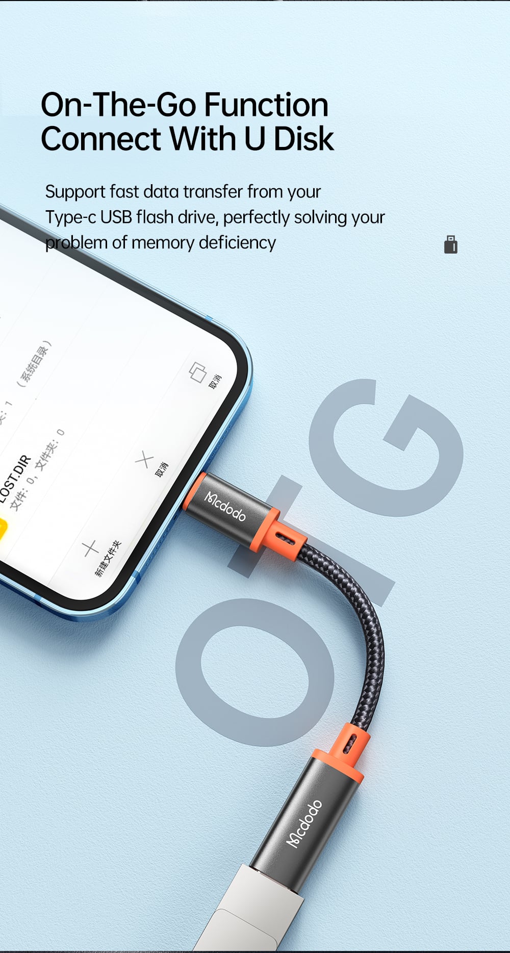 Giới thiệu Cáp Chuyển OTG Type-C to Lightning MCDODO Castle Series CA-144 (2A Max, 11cm, Support OTG audio headphone)
