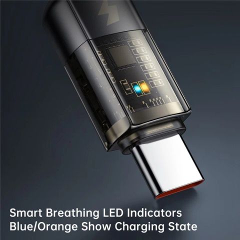 Vỏ đầu cáp trong suốt: Lấy cảm hứng từ phong cách Cyberpunk, phần đầu cáp được làm từ vật liệu trong suốt cao cấp, cho phép bạn nhìn thấy rõ các linh kiện mạch điện tử tinh xảo bên trong.