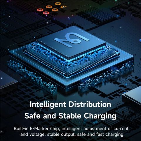 - Chip E-Marker Thông Minh: Được tích hợp chip E-Marker thế hệ mới, giúp tự động nhận diện thiết bị và điều chỉnh điện áp/dòng điện phù hợp, bảo vệ pin và mạch điện khỏi các rủi ro quá tải.