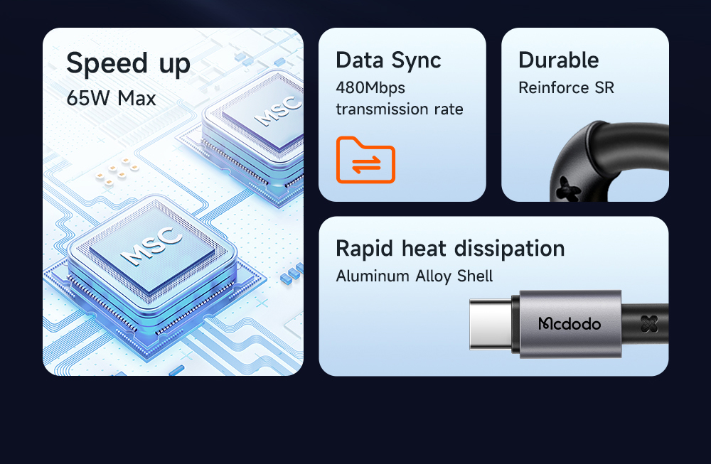 Tính năng Cáp Sạc Nhanh C to C MCDODO Prism Series CA-313 65W (480Mbps)