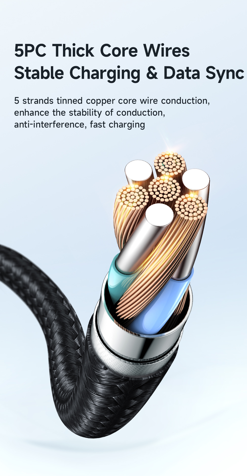 - Khớp nối gia cố: Phần tiếp nối giữa dây và đầu cáp (SR) được gia cố chắc chắn để chống lại tình trạng gãy gập - nguyên nhân hư hỏng phổ biến nhất trên cáp sạc.