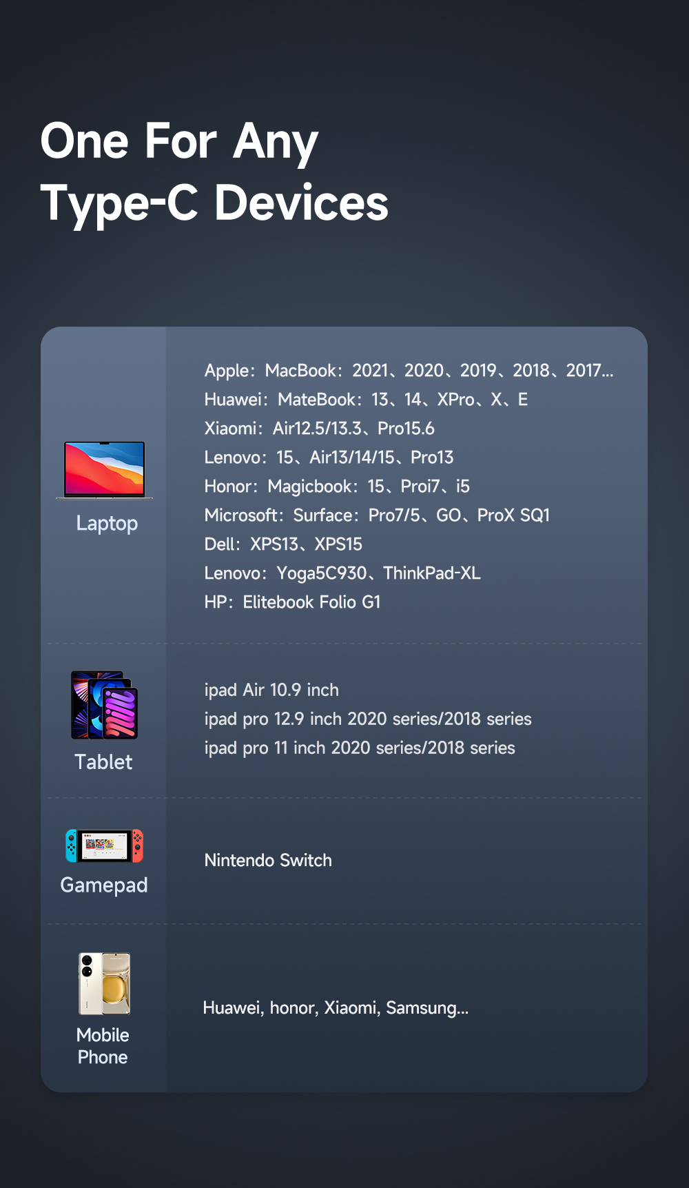 - Sạc nhanh Smartphone: Tương thích hoàn hảo với các chuẩn sạc nhanh của Samsung (Super Fast Charging), iPad Pro/Air và iPhone 15/16 Series, giúp rút ngắn đáng kể thời gian chờ đợi.