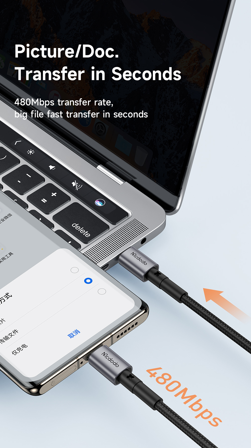 Ngoài khả năng cấp nguồn, cáp còn hỗ trợ truyền tải dữ liệu (hình ảnh, video, tài liệu) giữa các thiết bị với tốc độ tiêu chuẩn 480Mbps.