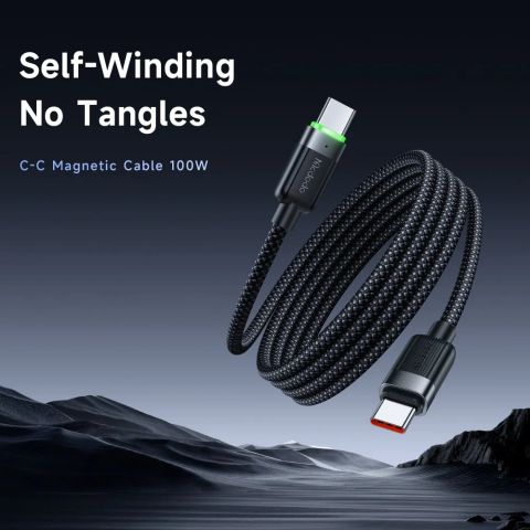 - Tự động gọn gàng: Dọc theo thân dây là các điểm từ tính (hoặc lớp vỏ từ tính) giúp dây tự động hút dính vào nhau khi cuộn lại. Bạn có thể thay đổi kích thước vòng cuộn tùy ý.