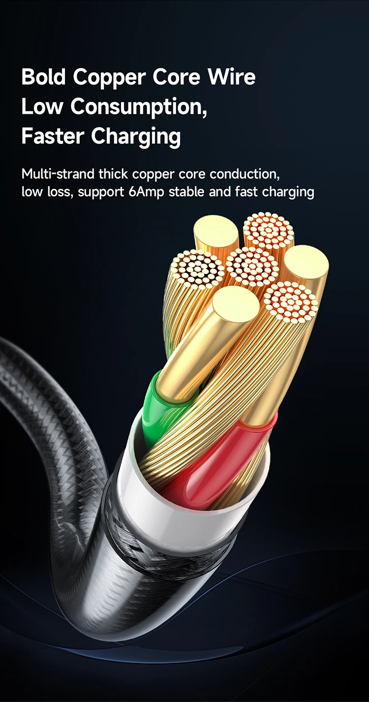 - Dòng điện 6A Max: Cáp hỗ trợ tải dòng điện lên đến 6A, cung cấp công suất tối đa 100W.