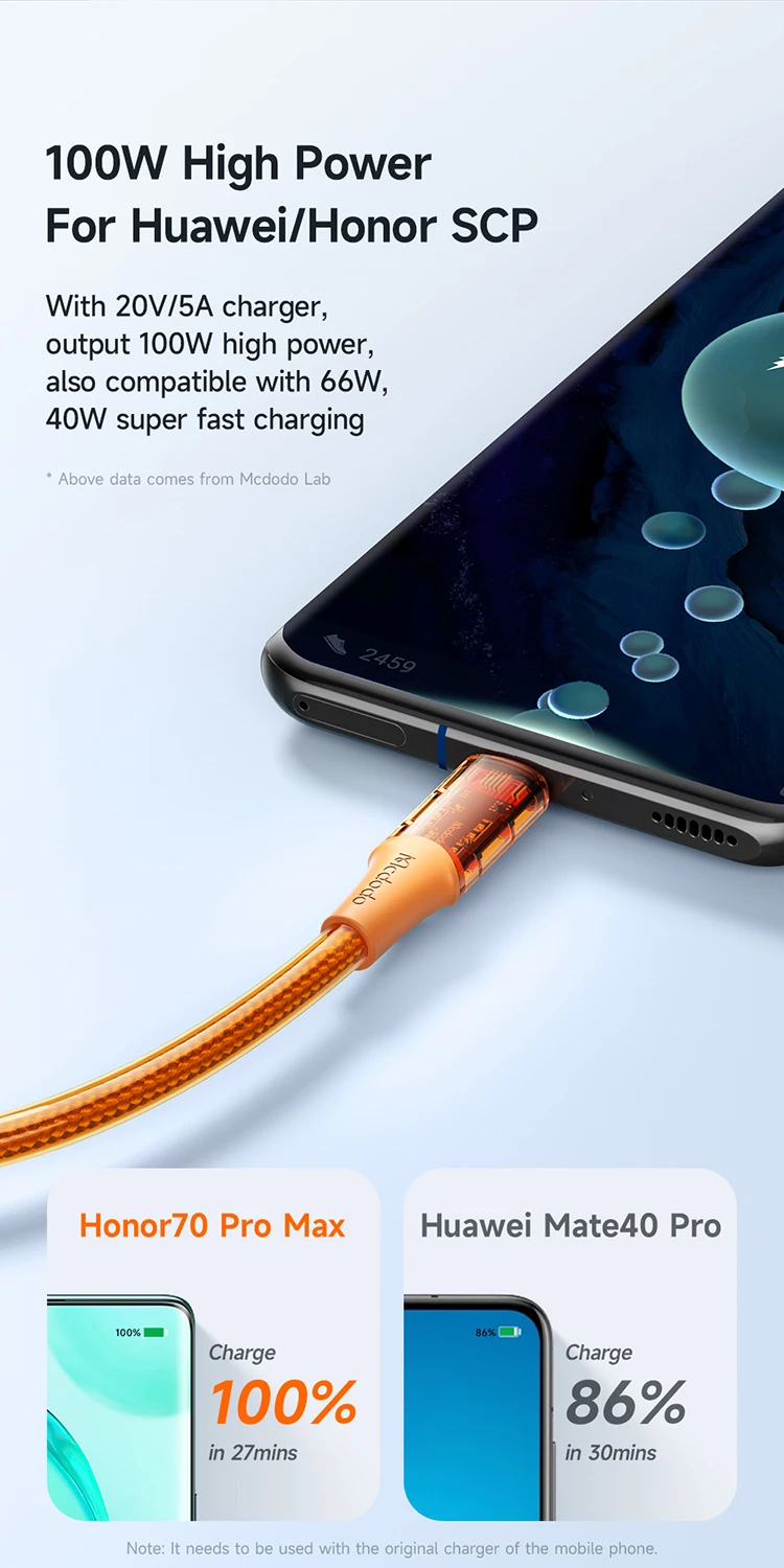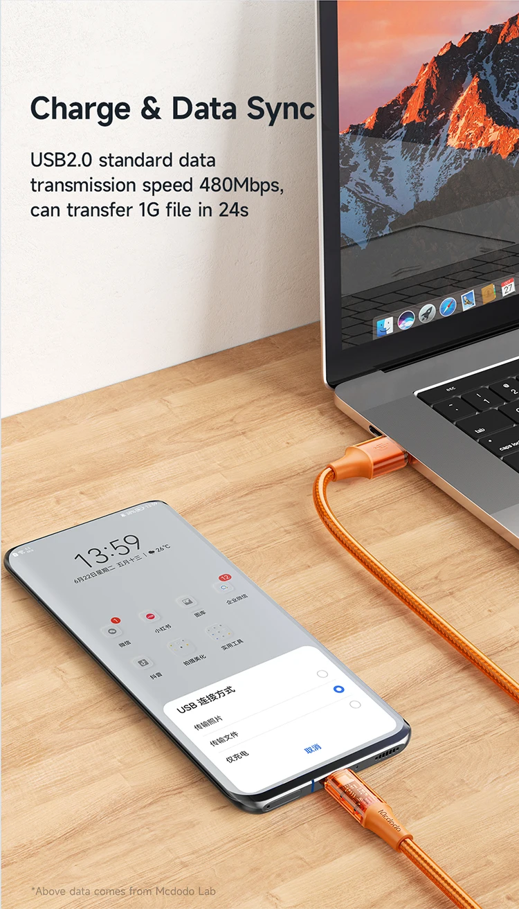 Tính năng Cáp Sạc Nhanh USB to Type-C MCDODO Amber Series CA-209 100W (1.2m, 6A, 480Mbps)