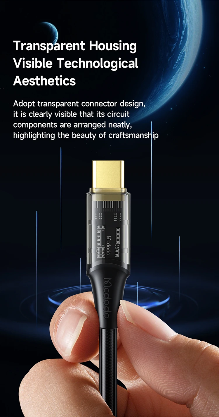 - Vỏ trong suốt: Phần đầu cáp được bao bọc bởi lớp vỏ nhựa trong suốt cao cấp, cho phép bạn nhìn thấy rõ các linh kiện mạch điện tử được sắp xếp tinh xảo bên trong.