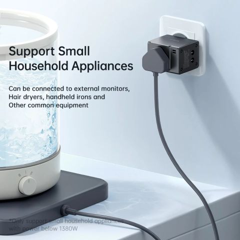 - Ổ cắm AC đa năng: Mặt trước hỗ trợ cắm các thiết bị điện du lịch (như máy cạo râu, bàn ủi du lịch, máy sấy tóc nhỏ...) với công suất hỗ trợ lên tới 1380W (tại điện áp 230V).