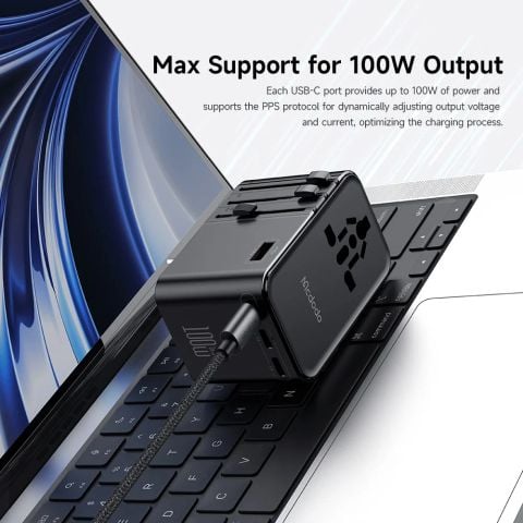 Nếu bạn nghĩ các loại ổ cắm du lịch chỉ dùng để sạc điện thoại hay cắm máy sấy tóc thì Mcdodo CP-614 (G5 Series) sẽ thay đổi hoàn toàn quan niệm đó. Đây là củ sạc du lịch đầu tiên và mạnh nhất của hãng đạt ngưỡng công suất 100W, tích hợp công nghệ GaN tối tân. Nó không chỉ là đầu chuyển đổi, mà là sự thay thế hoàn hảo cho cục sạc MacBook Pro to nặng trong mọi chuyến đi.
