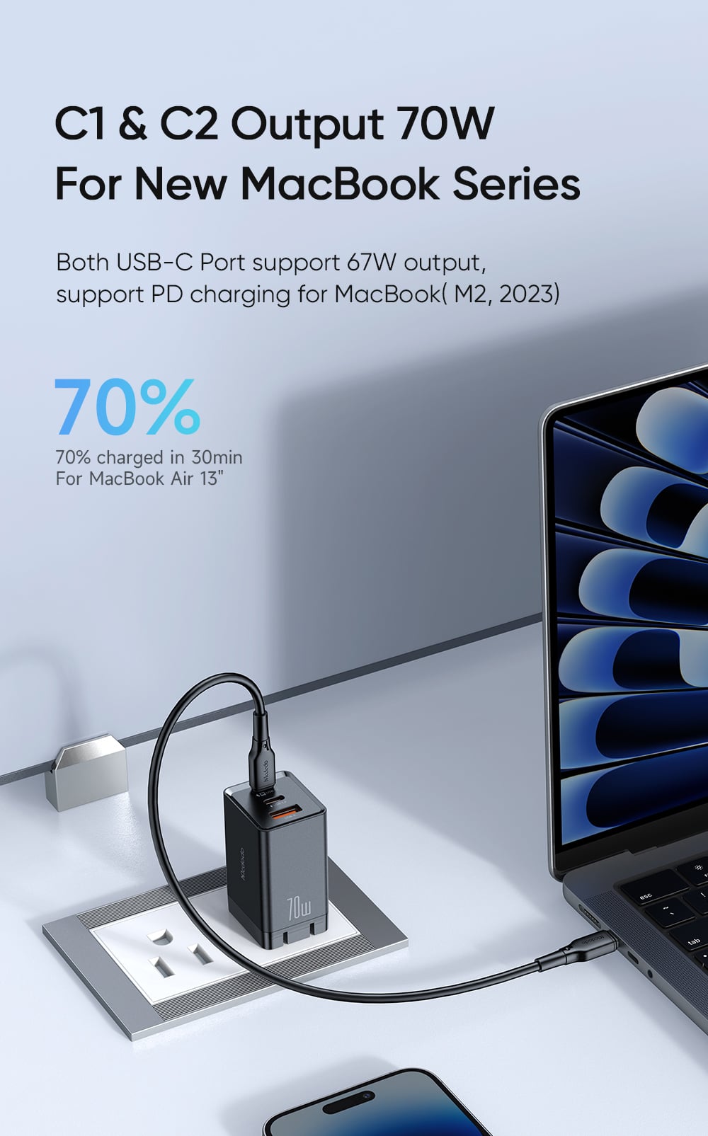 USB-C1+USB-A: 45W+18W(63W Max.)