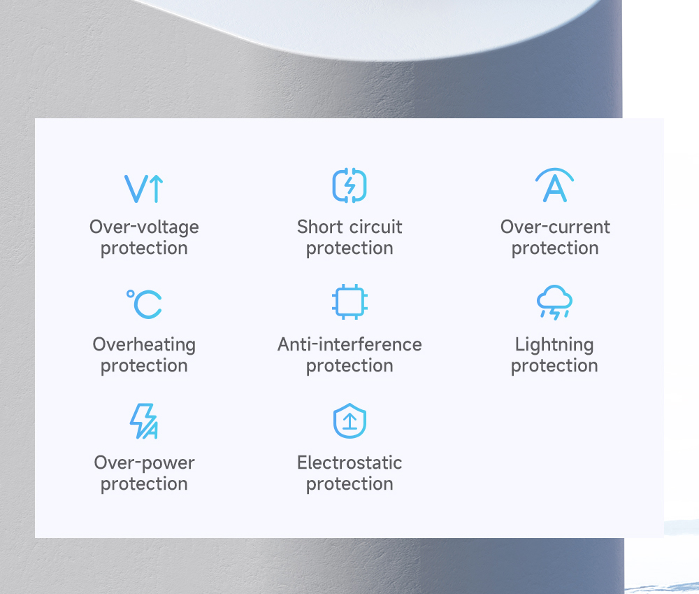 - Bảo vệ toàn diện: Tích hợp các tính năng an toàn như chống quá tải, quá áp, ngắn mạch, bảo vệ thiết bị của bạn khỏi các rủi ro về điện.