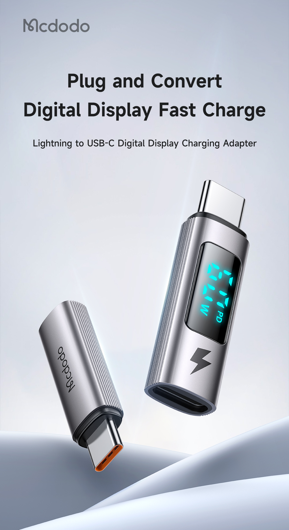Giới thiệu Đầu Chuyển Lightning to Type-C MCDODO Wales Series OT-599 36W (Exclusively for iPhone, Digital display, 480Mbps)