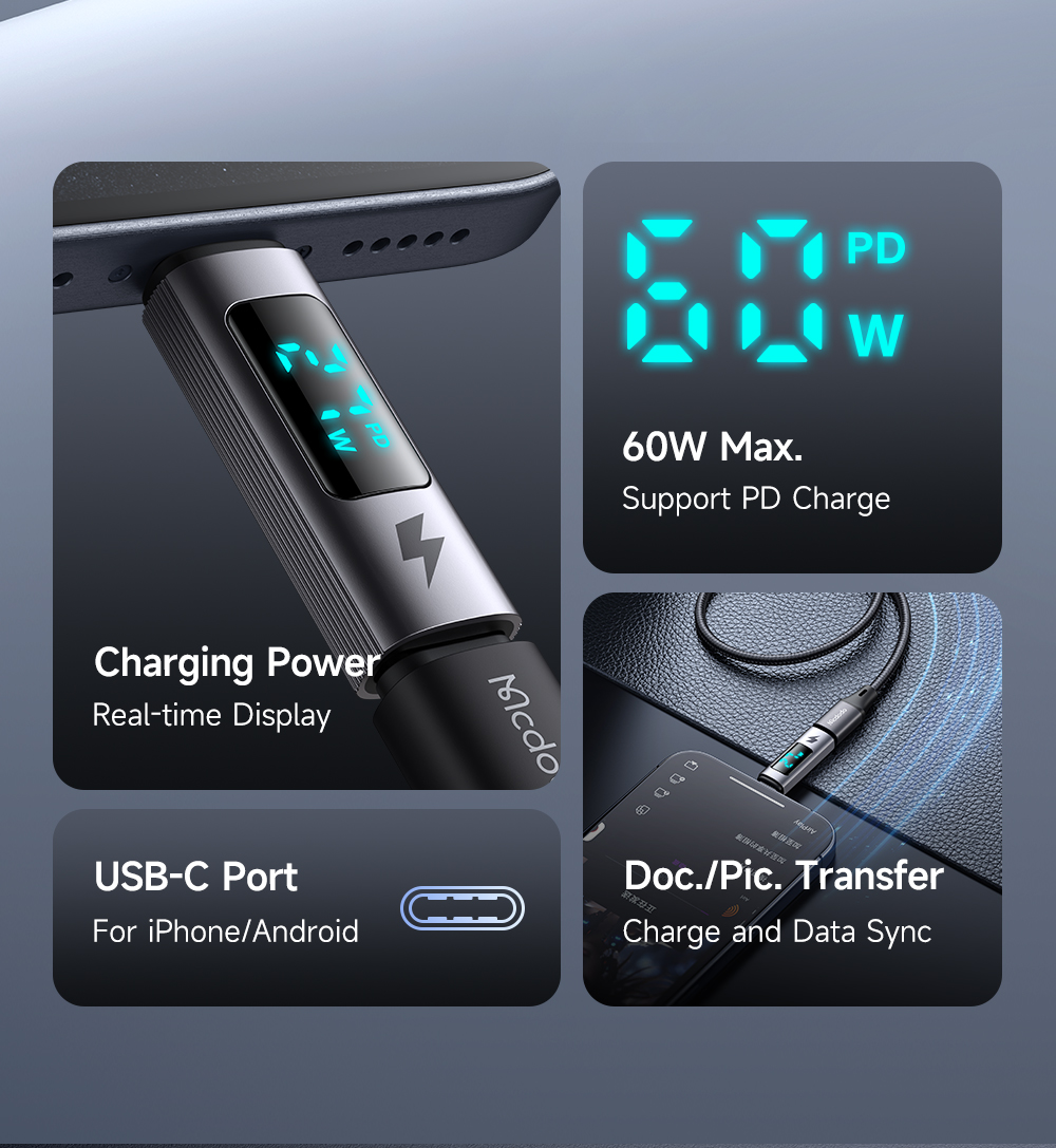 Tính năng Đầu Chuyển Lightning to Type-C MCDODO Wales Series OT-599 36W (Exclusively for iPhone, Digital display, 480Mbps)