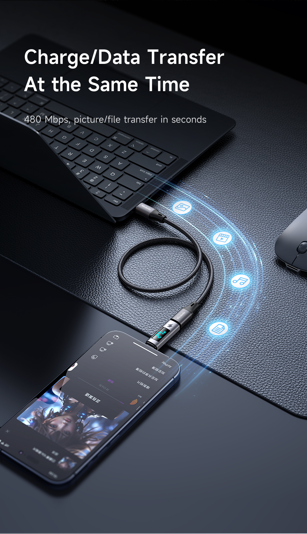 Tốc độ 480Mbps: Cho phép bạn sao chép hình ảnh, video, tài liệu từ iPhone/iPad sang MacBook hoặc Laptop Windows một cách nhanh chóng và dễ dàng.