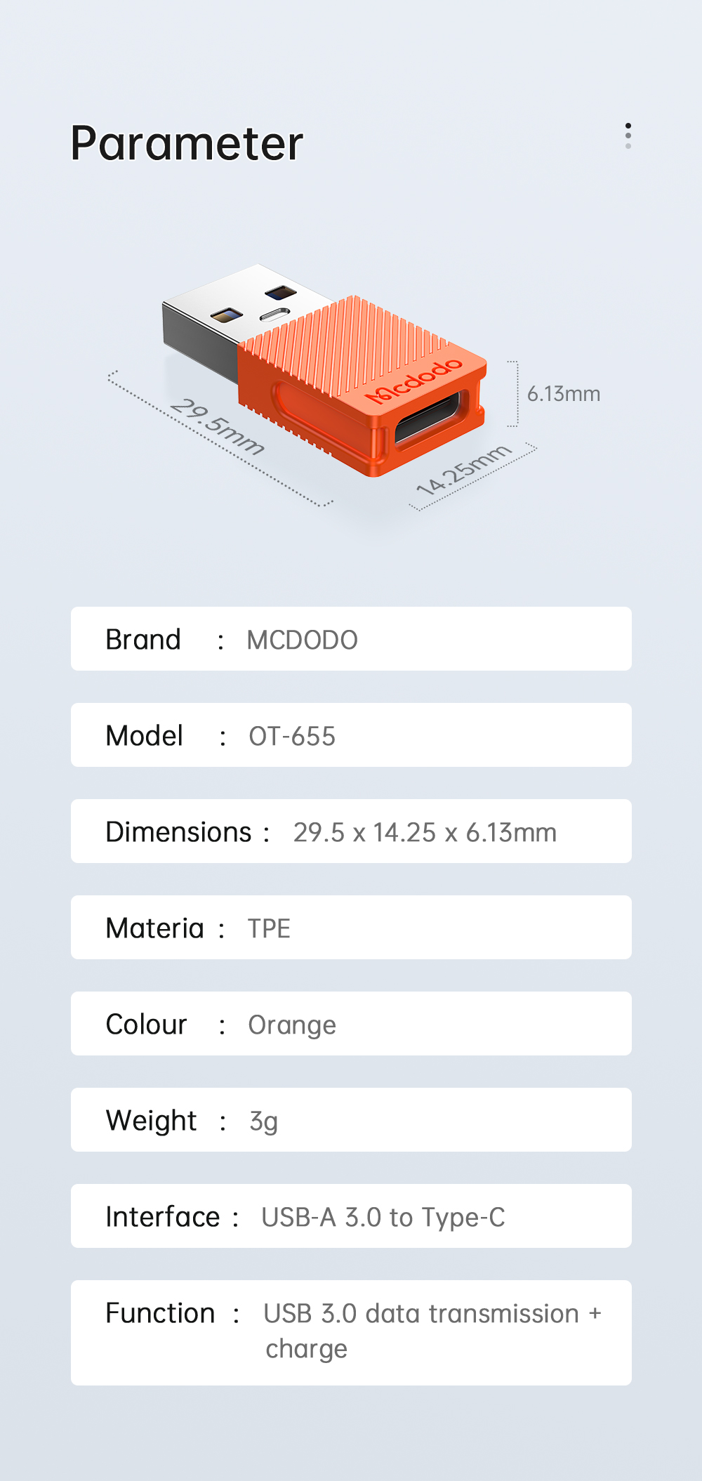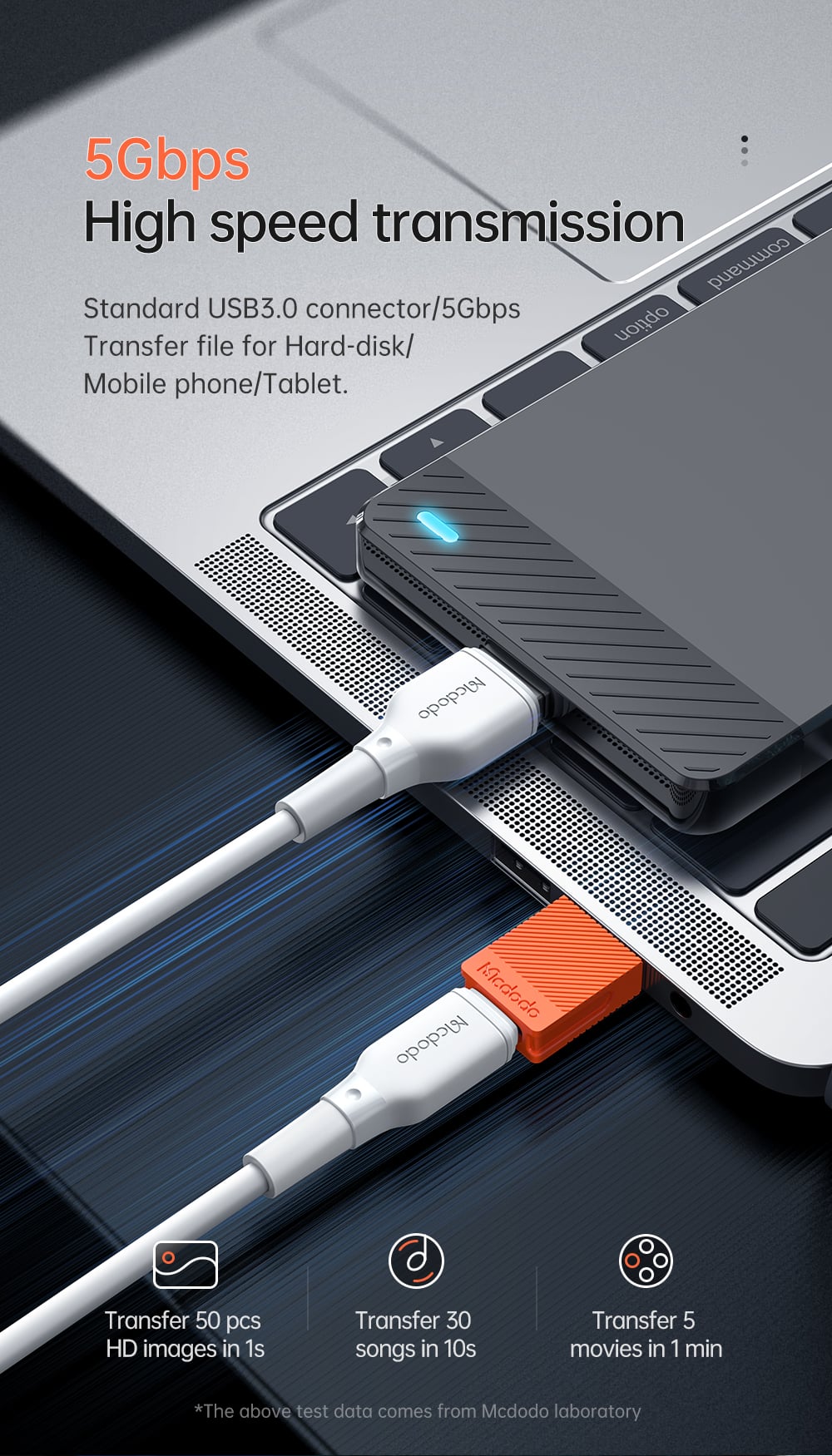 Điểm mạnh nhất của Mcdodo OT-655 là được trang bị chuẩn giao tiếp USB 3.0, mang lại tốc độ truyền dữ liệu lên đến 5Gbps.