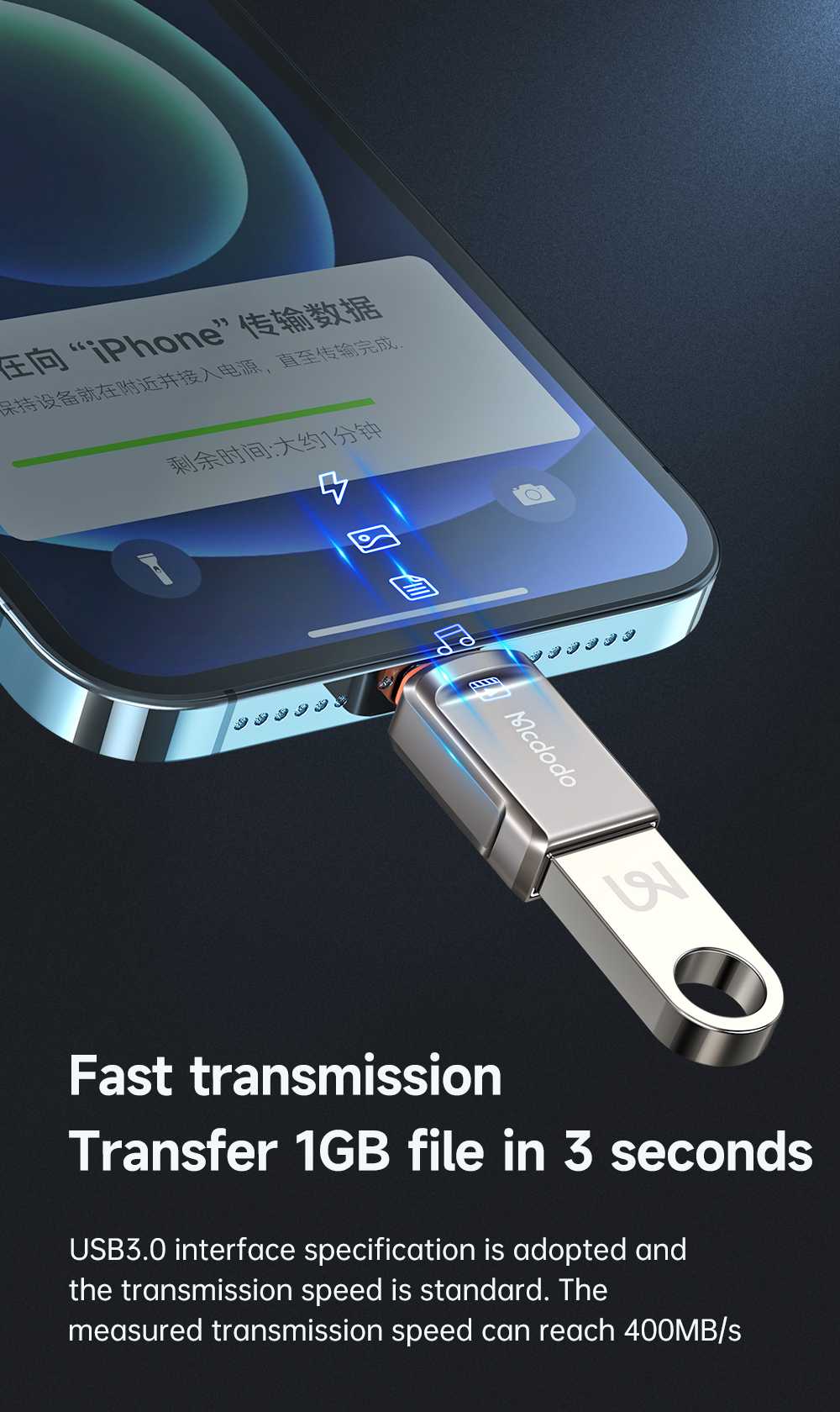 Điểm mạnh nhất của Mcdodo OT-860 là được trang bị chuẩn giao tiếp USB 3.0, cho tốc độ truyền tải lý thuyết lên đến 5.0Gbps (nhanh hơn nhiều so với chuẩn USB 2.0 thông thường).