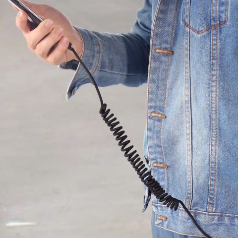 Coiled cable design saves space and discourages tangles