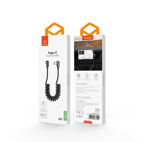 1 x MCDODO 1.8M Spring Coiled Elbow Shape Typc-C USB Data Sync Charger Cable