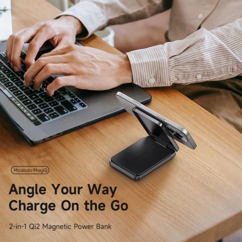 Hình Ảnh Pin Dự Phòng Không Dây 2-in-1 MCDODO MC-631 10000mAh 20W (With Foldable Phone Stand, Qi2 15W Wireless Charging, 1*Type-C port, LED Display)