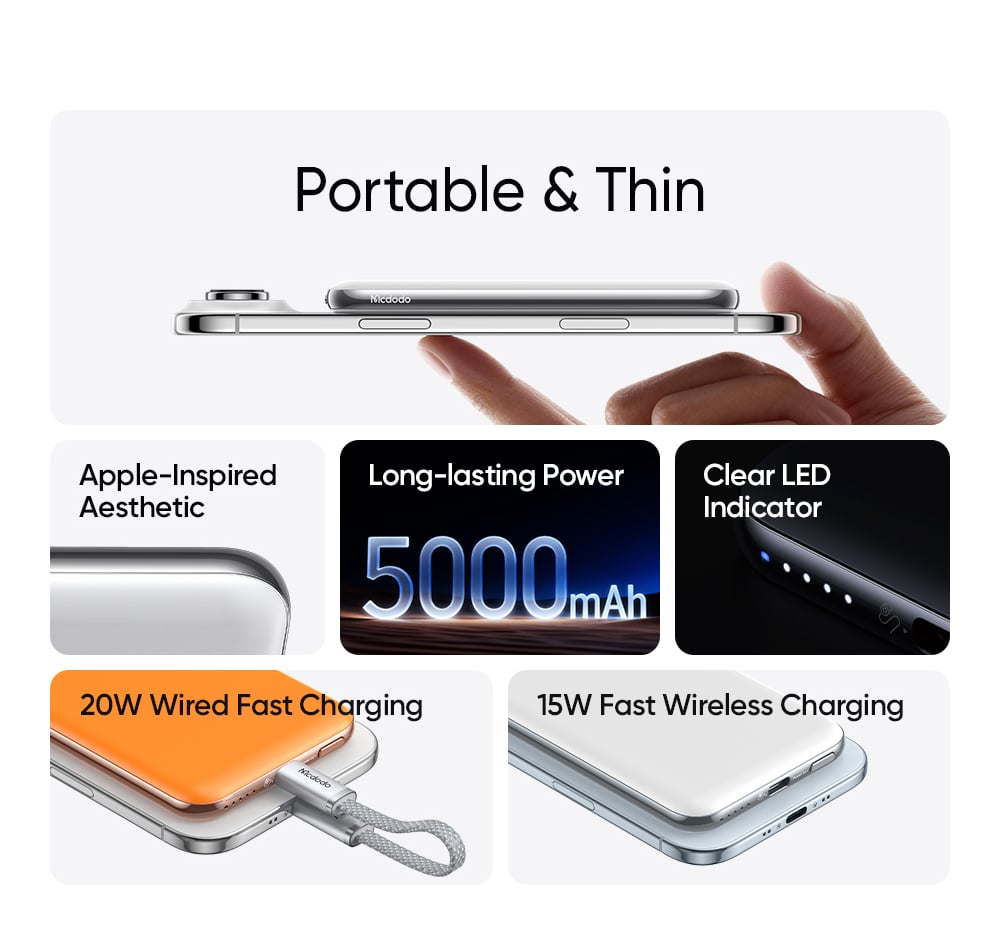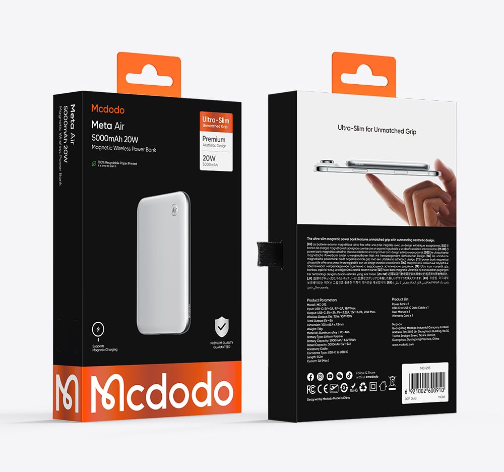 Trong kỷ nguyên công nghệ di động, một chiếc pin dự phòng không chỉ cần dung lượng lớn mà còn phải đáp ứng được tiêu chí thẩm mỹ và sự tiện lợi. Mcdodo MetaAir Series 5000mAh (MC-293) chính là sự kết hợp hoàn hảo giữa thiết kế "siêu mỏng cánh" và hiệu suất sạc mạnh mẽ, đạt chứng nhận an toàn khắt khe CCC/3C.