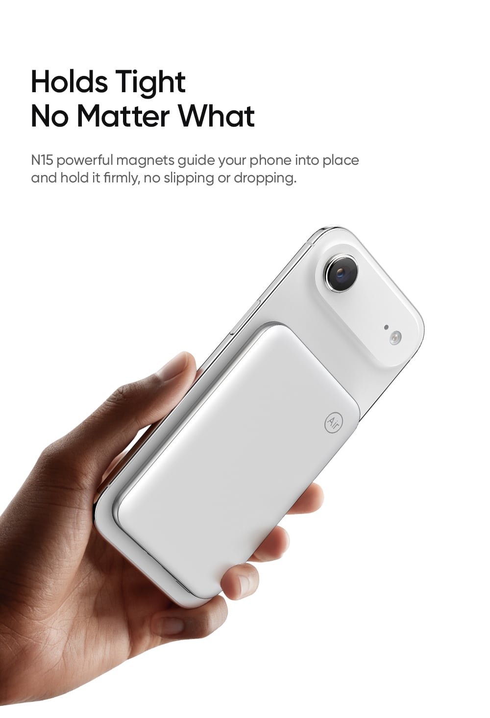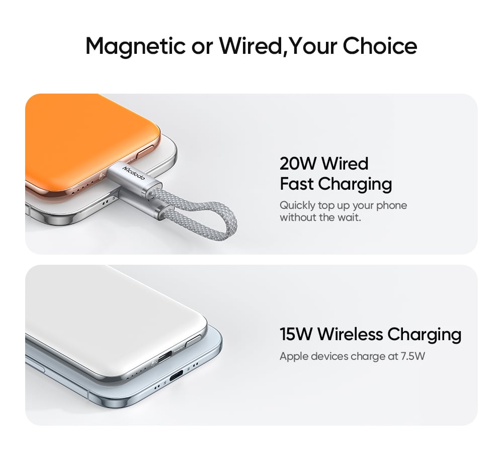 Được tối ưu hóa cho các dòng điện thoại hỗ trợ sạc không dây, Mcdodo MetaAir cung cấp công suất sạc không dây linh hoạt từ 5W, 7.5W, 10W đến tối đa 15W. Lực hút từ tính mạnh mẽ giúp pin bám chặt vào điện thoại, đảm bảo quá trình sạc luôn ổn định ngay cả khi bạn đang di chuyển.