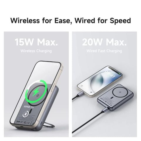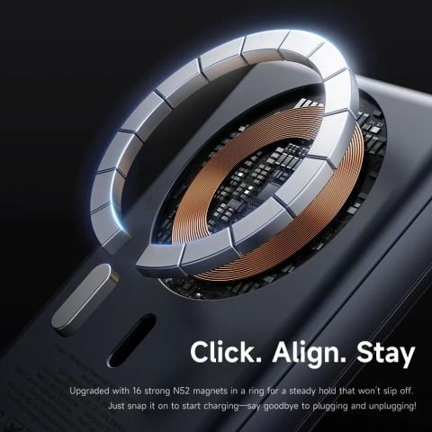 - Sạc không dây từ tính: Tích hợp nam châm N52 siêu mạnh, hít chặt vào lưng các dòng iPhone 12/13/14/15 series. Hỗ trợ sạc không dây 15W/7.5W.
