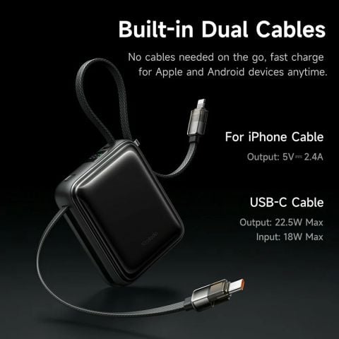 Hình Ảnh Pin Dự Phòng MCDODO Freekit MC-255 10000mAh 22.5W (with Type-C + Lightning Built-In Cables, LED Power Display)