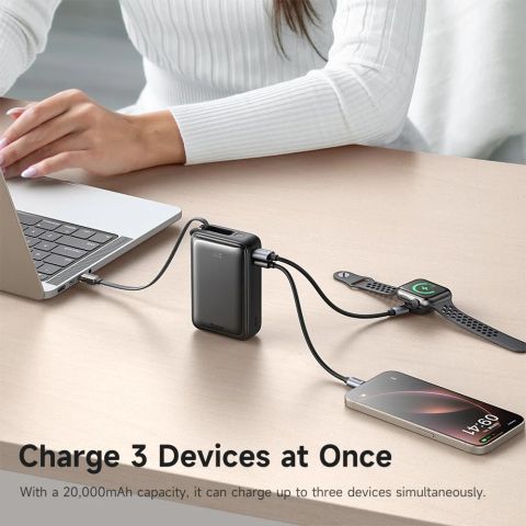 Sạc lại pin siêu tốc: Cáp tích hợp cũng hỗ trợ sạc đầu vào (Input) lên tới 45W. Nếu dùng củ sạc 45W/65W, bạn chỉ mất khoảng 1.5 - 2 giờ để nạp đầy lại viên pin 20.000mAh này (nhanh gấp nhiều lần so với sạc thường).