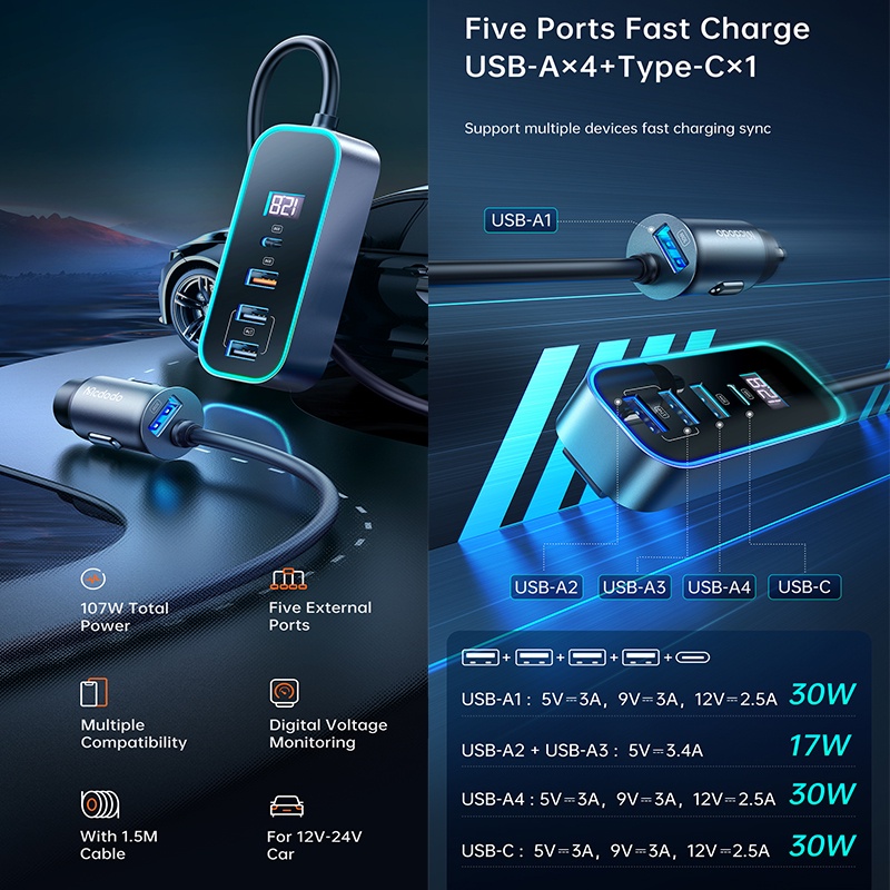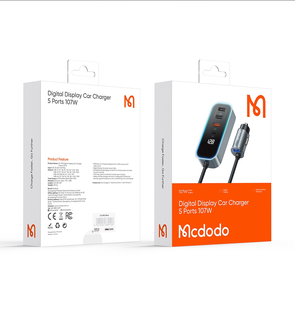 Mcdodo CC-190 chính là giải pháp toàn diện nhất hiện nay. Với thiết kế dây nối dài độc đáo và tổng công suất khủng 107W, đây không chỉ là một chiếc tẩu sạc, mà là một "trạm sạc di động" phục vụ cho cả xe.