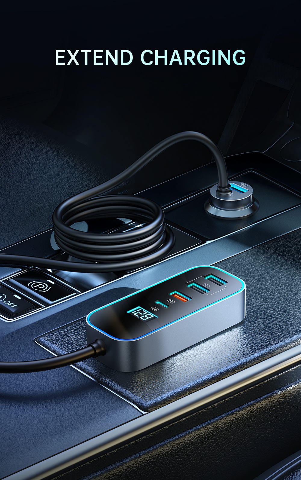 Khác với các loại tẩu sạc truyền thống chỉ nằm ở taplo, Mcdodo CC-190 bao gồm 2 phần được nối với nhau bằng dây cáp dài 1.5 mét: